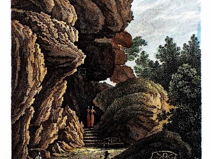 Und das, was uns der Gärtner erzählte: der Felsen, der uns in Erstaunen setzte, ist riesengroß und schon jeher auf zwei Gebirgsmassiven gestützt. Der Graf von Reuss befohl die ganze Erde zu entfernen, so dass er jetzt in der Luft hängt, man kann unten durchgehen, sich hinsetzten. Die Klause, im Felsen geschmiedet, erweckt Neugier und jeder bleibt gern hier für ein Moment stehen. (...)“