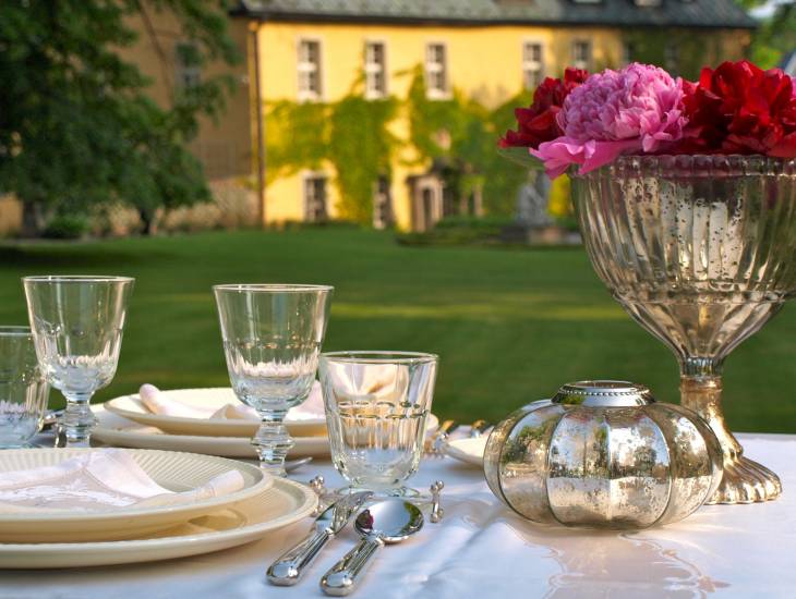 - breakfast served on the terrace overlooking the English landscaped park and rose terraces (weather dependent)